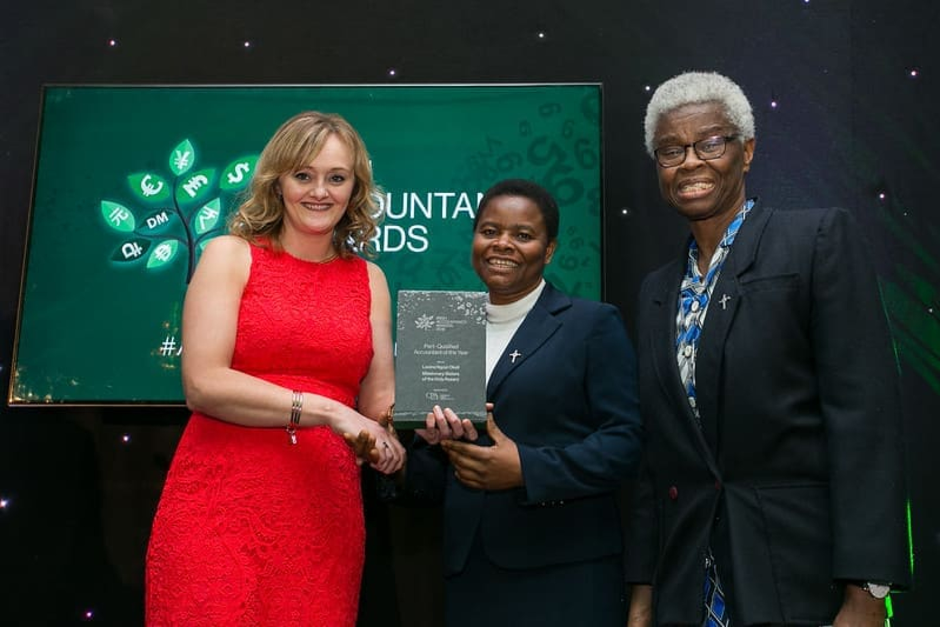 Gillian Peters, Business Development Director, CPA Ireland presents the Part- Qualified Accountant of the Year award to Lovina Ngozi Okoli and Sabina Anokwu, Missionary Sisters of the Holy Rosary.