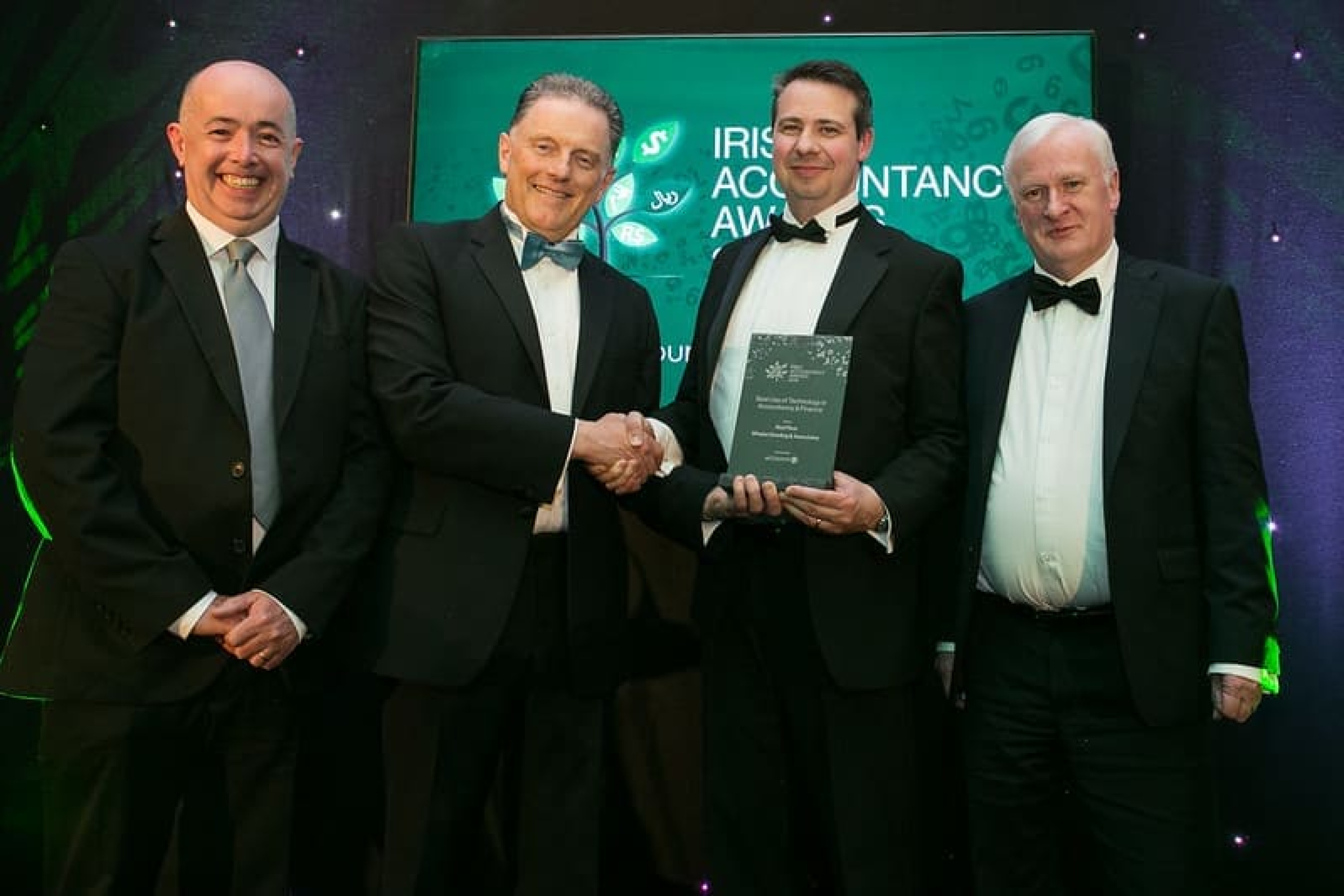 Tony Connolly, presents the Best Use of Technology in Accountancy & Finance award to Brendan Killcoch, Jason Dowling and Sean Whelan, Whelan Dowling & Associates.