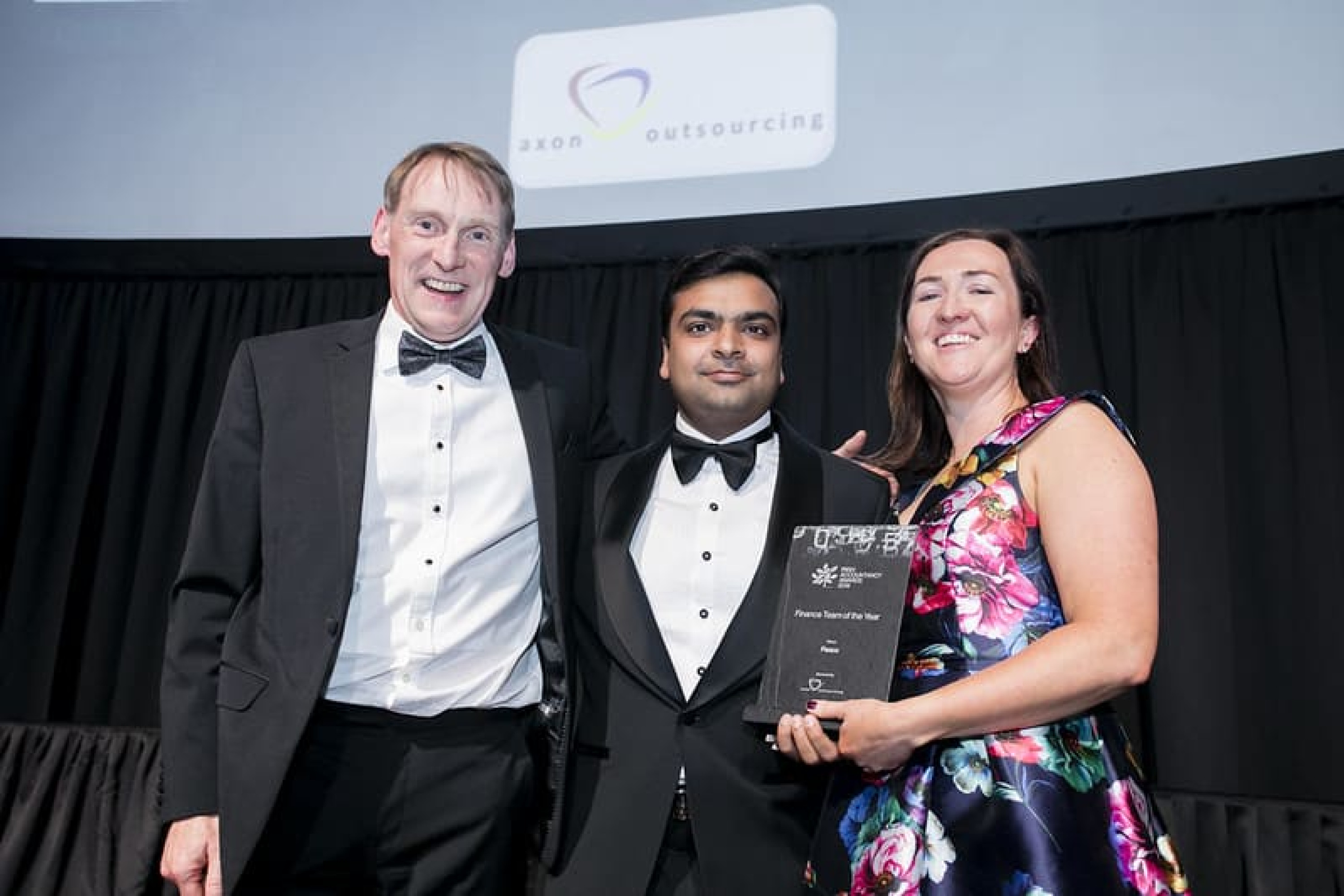 Rohit Garg, Managing Partner, Axon Outsourcing, presents the Finance Team of the Year award to Mark O'Connor & Rose O’Sullivan, Fexco.