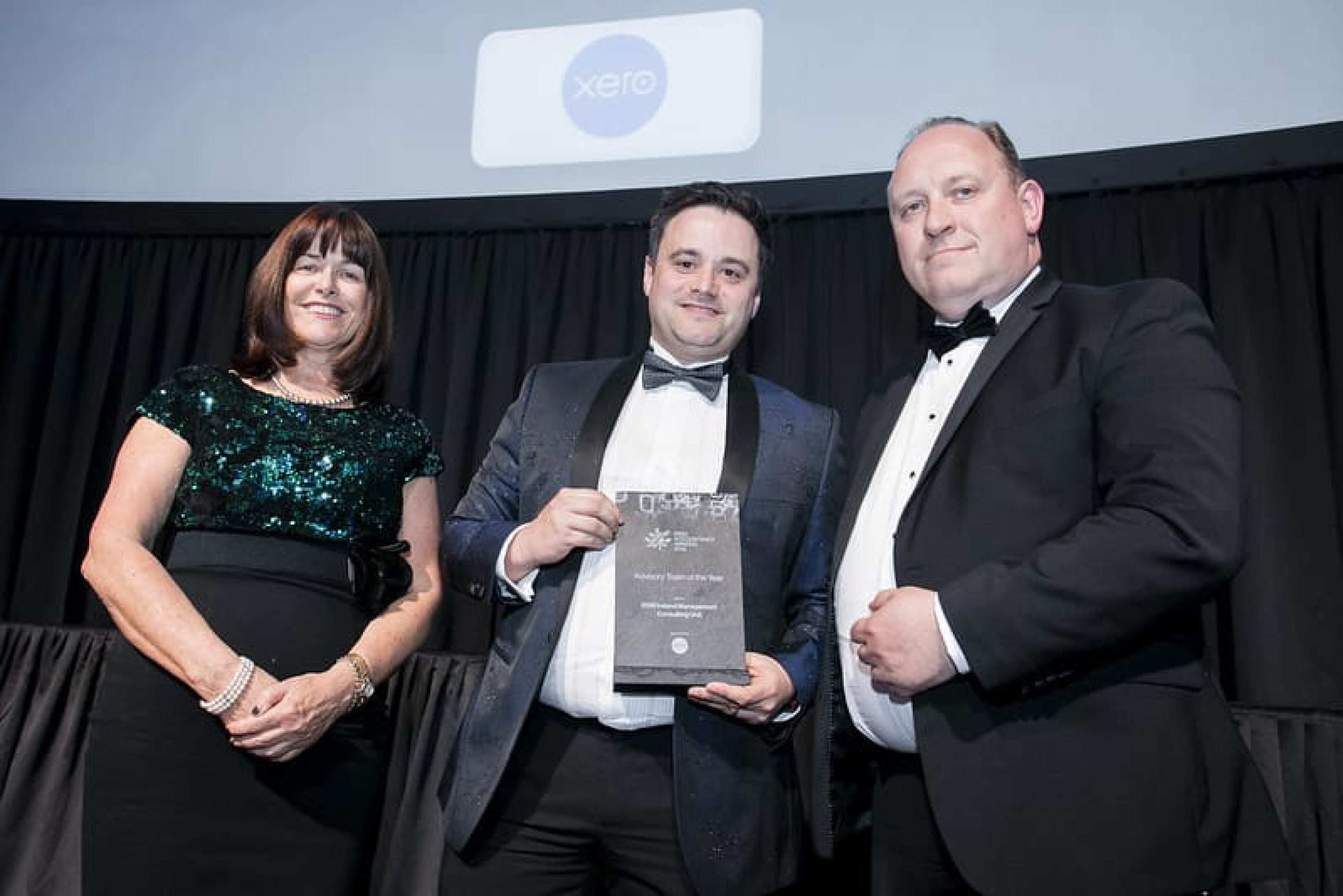 Glen Foster, Director, Xero, presents the Advisory Team of the Year award to Catherine Corcoran & Terry McAdam, RSM Ireland Management Consulting Unit.