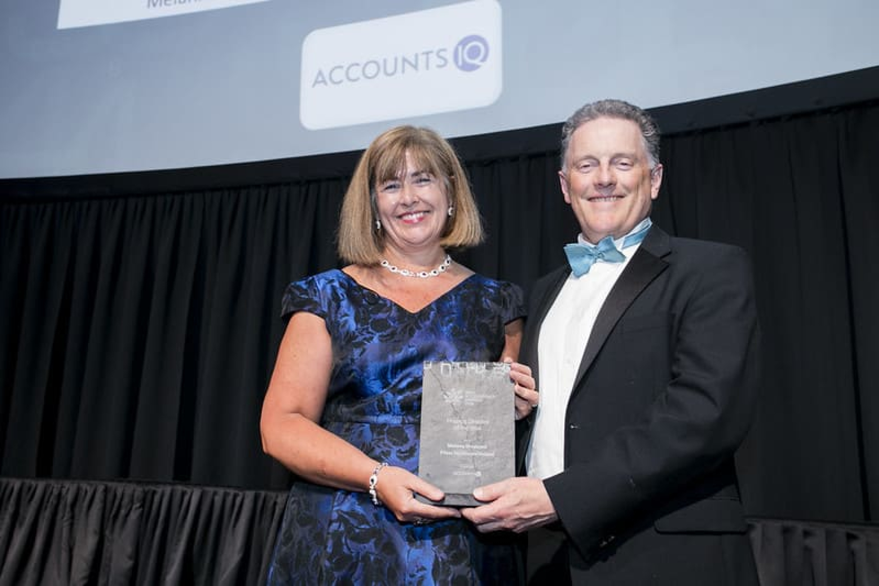 Tony Connolly, founder & CEO, AccountsIQ, presents the Finance Director of the Year award to Melanie Sheppard, Pfizer Healthcare Ireland.