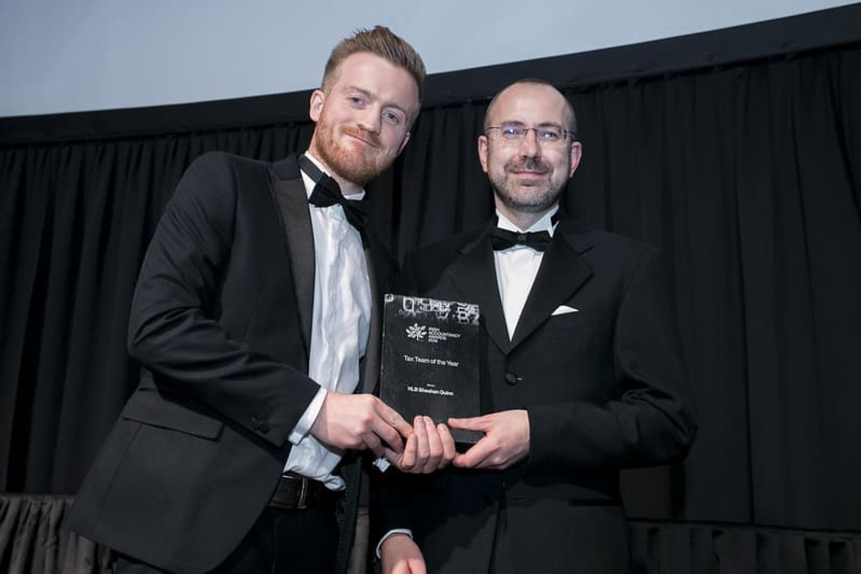 Fergal McManus, Regional Account Manager – Ireland, Confirmation, presents the Tax Team of the Year award to Bruce Stanley, HLB Sheehan Quinn.