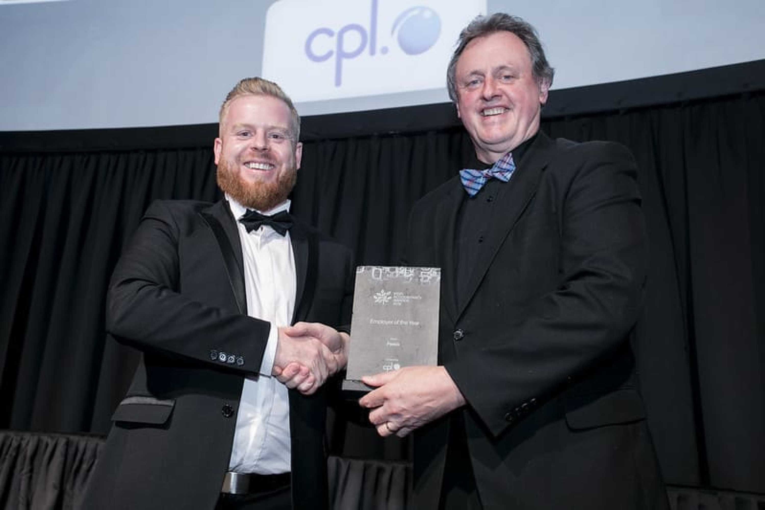 Ciaran Bergin, Associate Director, Cpl, presents the Employer of the Year award to Ger O'Sullivan, Fexco.