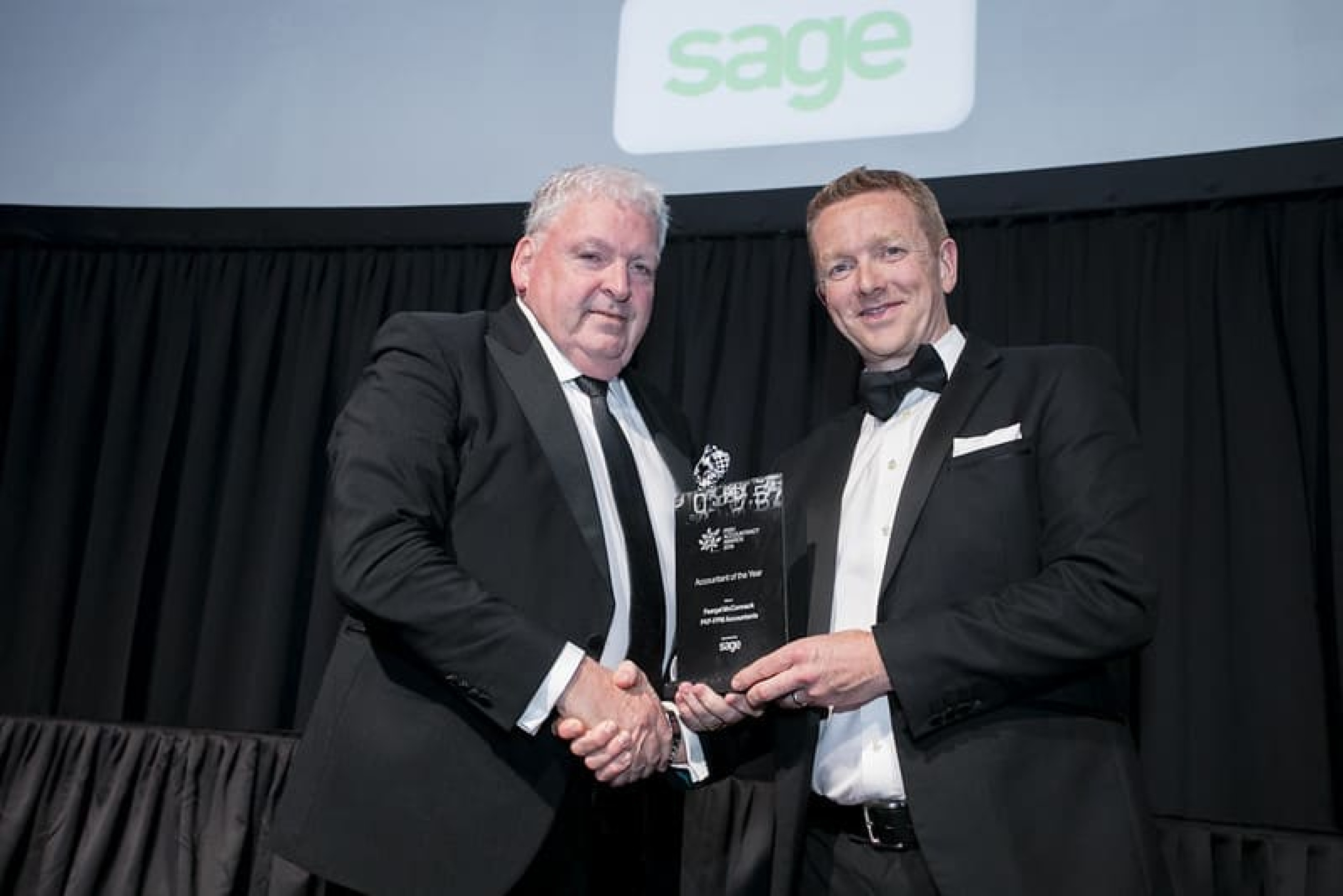 Barry Murphy, Managing Director, Sage, presents the Accountant of the Year award to Feargal McCormack, PKF-FPM Accountants.