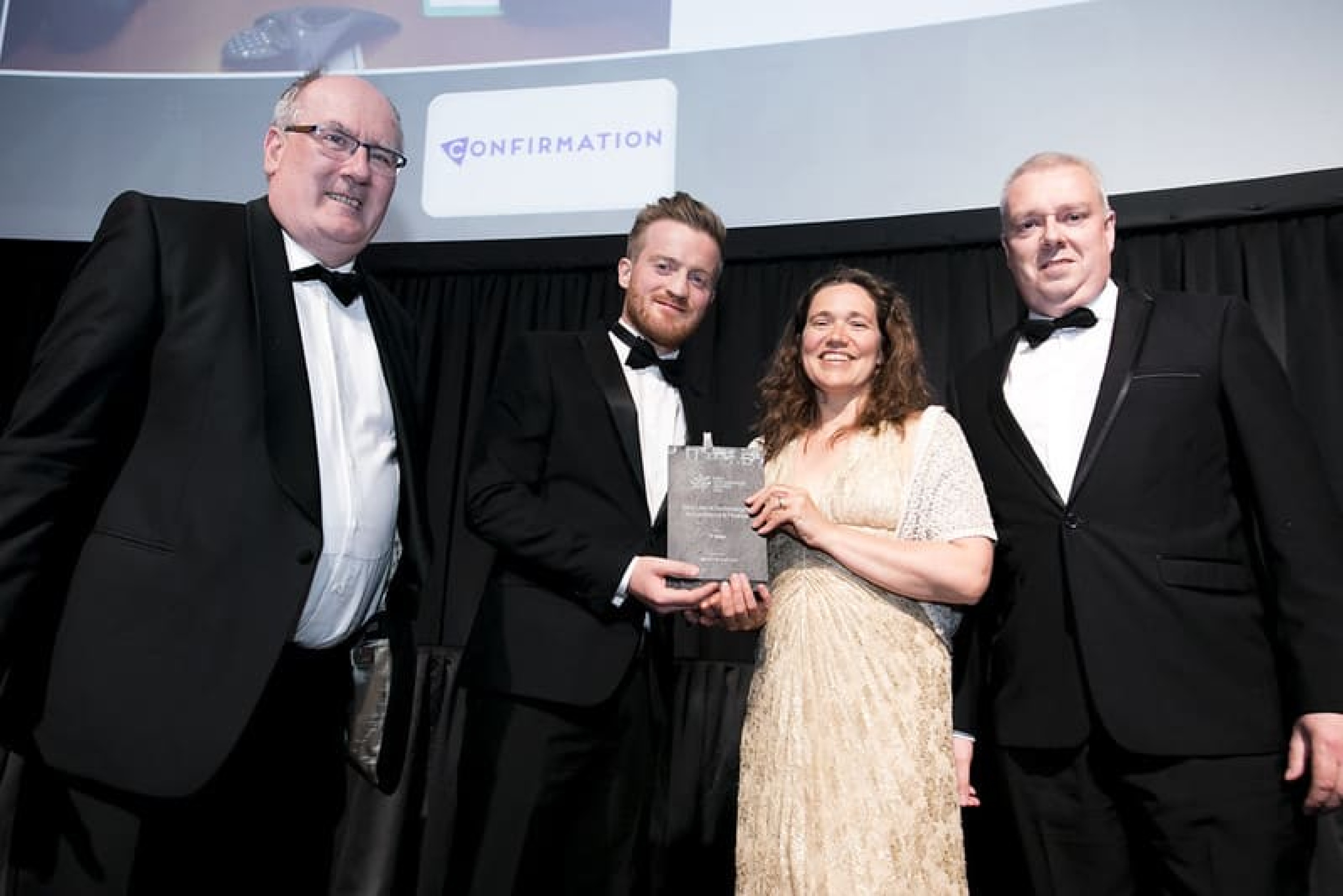 Fergal McManus, Regional Account Manager – Ireland, Confirmation, presents the Best Use of Technology in Accountancy & Finance award to Michael Barrett, Elizabeth McCabe & John Gannon, IT Sligo.