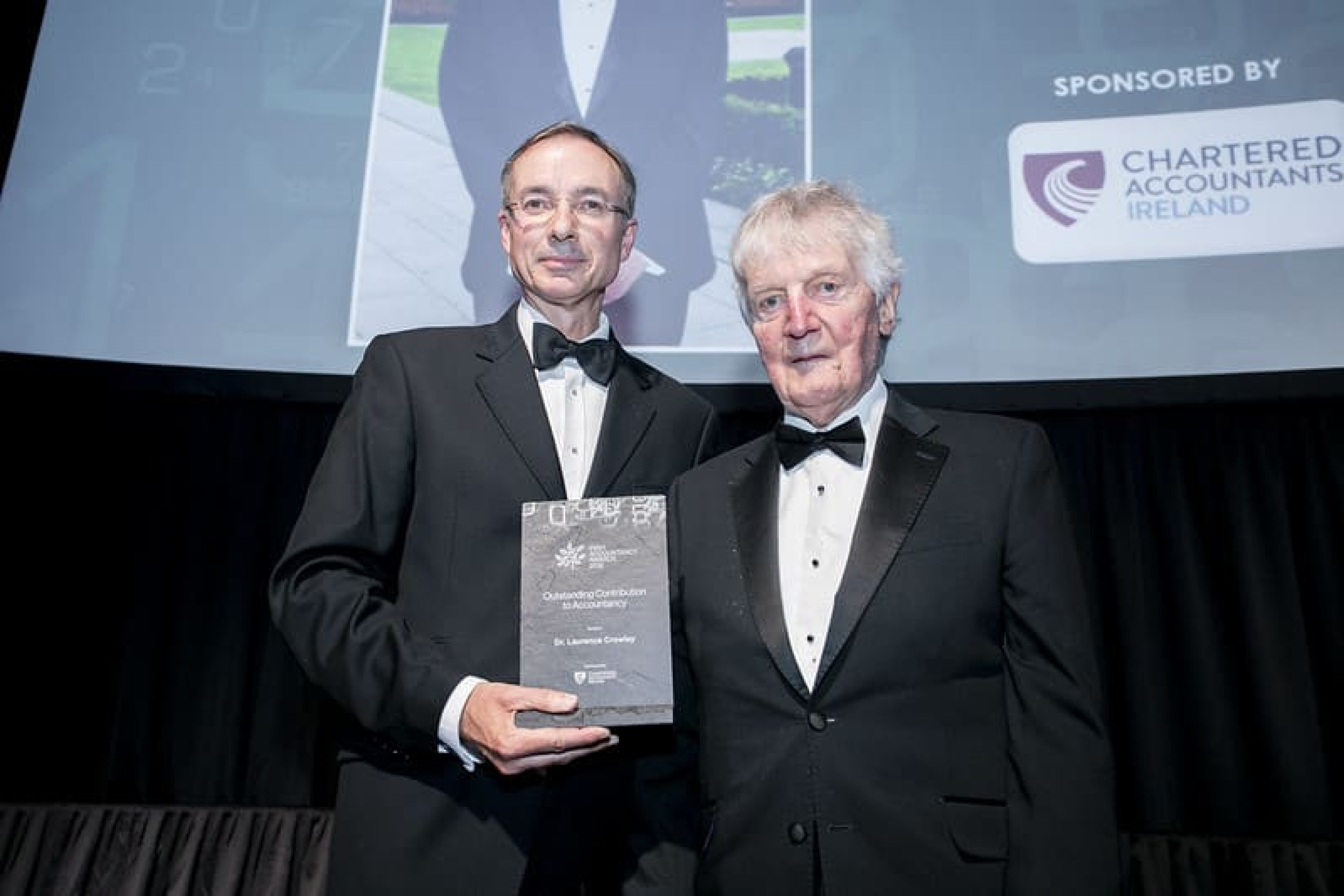 Barry Dempsey, Chief Executive, Chartered Accountants Ireland presents the Outstanding Contribution to Accountancy award to Dr. Laurence Crowley.