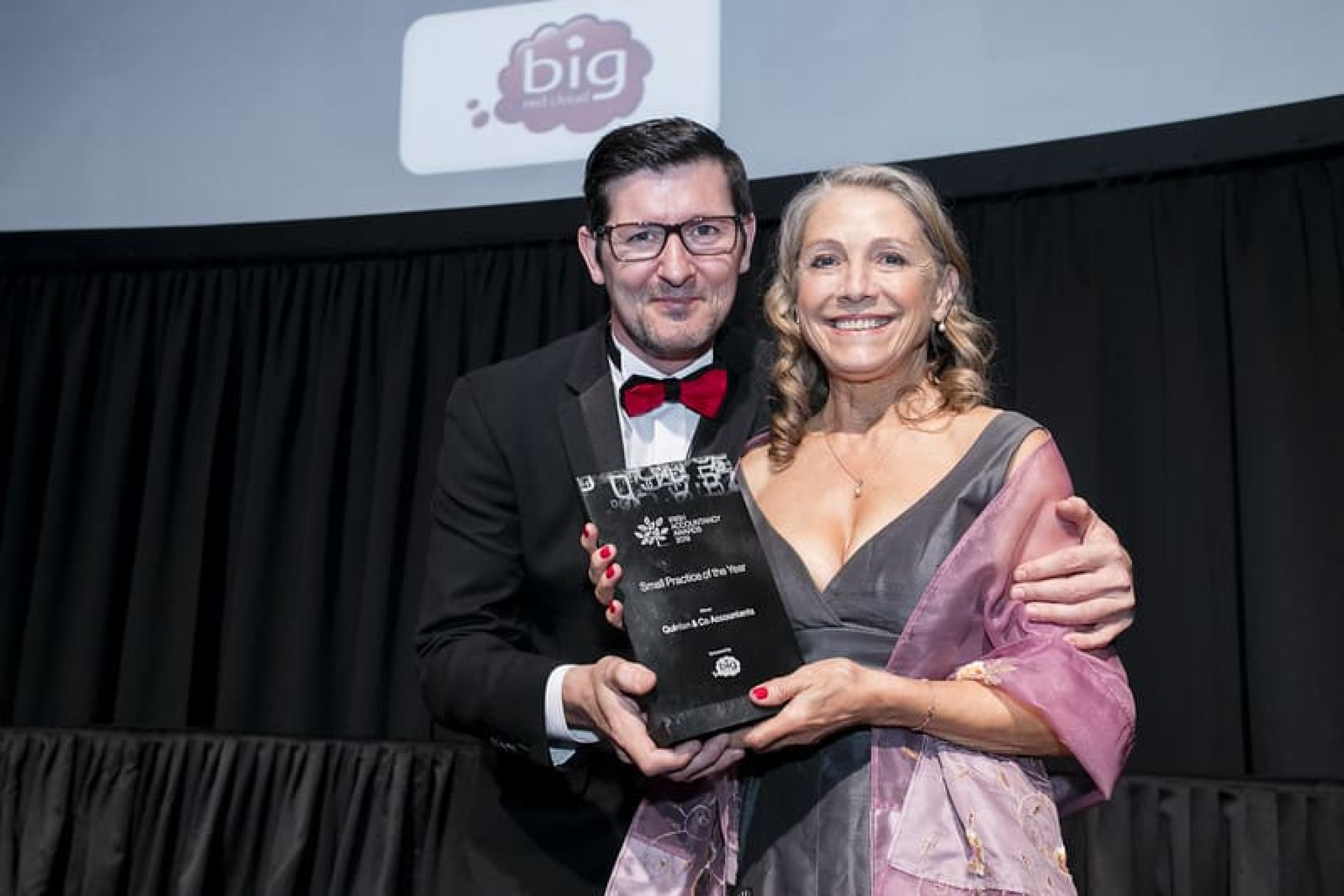 Ian Hobbs, Sales Manager, Big Red Cloud, presents the Small Practice of the Year award to Eilis Quinlan, Quinlan & Co Accountants.